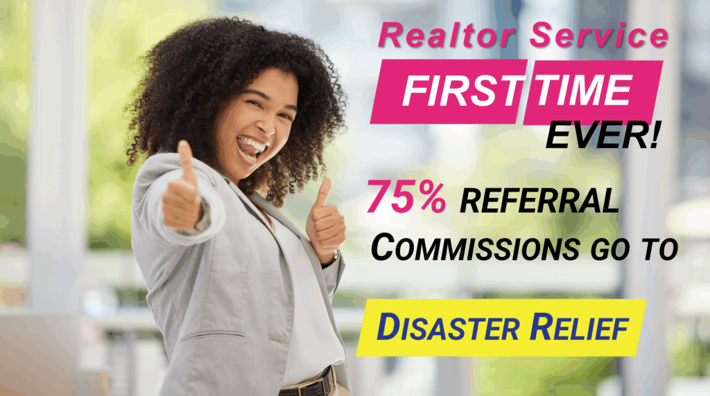 Realtors of Hope is a charitable Realtor referral organization. From every referral commission received, 75% is donated directly to American disaster relief, with the remaining 25% supporting the operating costs of our charitable organization.